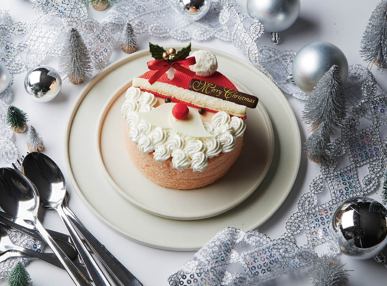 苺ムースとバニラクリーム、苺のジュレが織りなす、甘酸っぱくてまろやかな味わい。生クリームで立体的に表現された髭や、赤い帽子が愛らしいキュートなケーキ。見た目も味も楽しめる、クリスマス限定のスペシャルスイーツです。