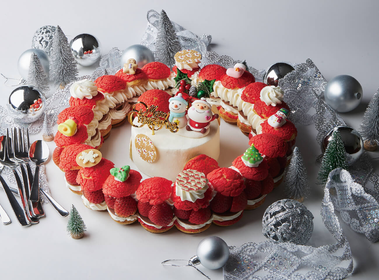 直径30cmの特別なパリブレストをクリスマス限定でお届けします。フランス伝統のシュー生地とプラリネクリームを基調に、苺と生クリームをプラスし気品ある華やかさと贅沢な味わいを追求しました。聖夜を彩る一品として、大切な方々とご一緒にお楽しみください。