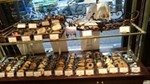 店内正面にあるショーケースは、長さ約1.8mで1段のみの角ばったガラス張り、高さはそれほどなく上 から眺める感じで全体を見渡せます。また、中に入ったケーキトレーは輝く銀のステンレス製で長さ50 cmぐらいはあり、ケーキが7個~8個のってます。