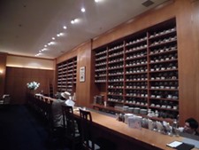 カウンターの奥には世界各国から集められたカップが壁一面に並んでいます。
