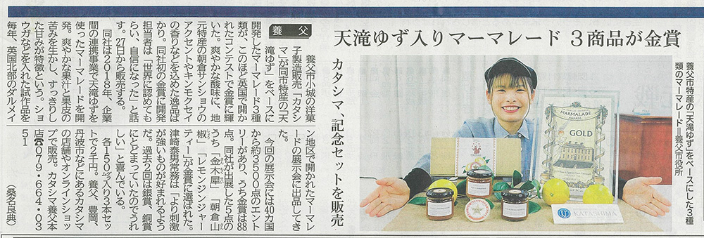 マーマレードアワード金賞受賞が新聞に掲載されました。