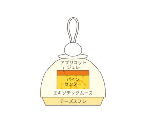 エキゾチックフルーツをバランス良くブレンドしたムースにスフレチーズをあわせた爽やかな味わいのケーキ。