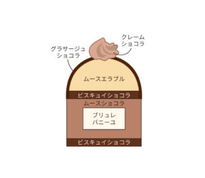 マイルドなミルクチョコレートにクレームブリュレがマッチング。メープルがほのかに香るXmasショコラケーキ。