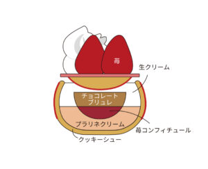 鮮やかなクッキーシューにプラリネクリームと苺を合わせしクリスマスの華やかさと贅沢な味わいを追求しました。