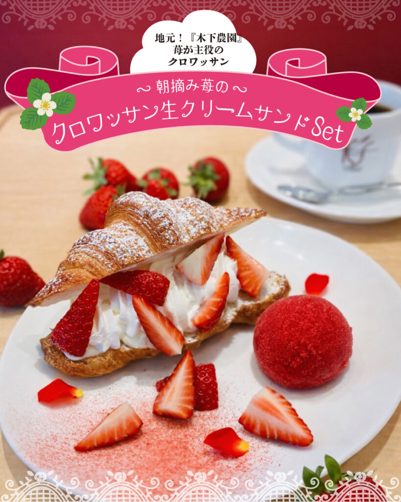 ティールームにて地元「木下農園」 苺が主役のクロワッサン をコーヒーとセットでご提供!!