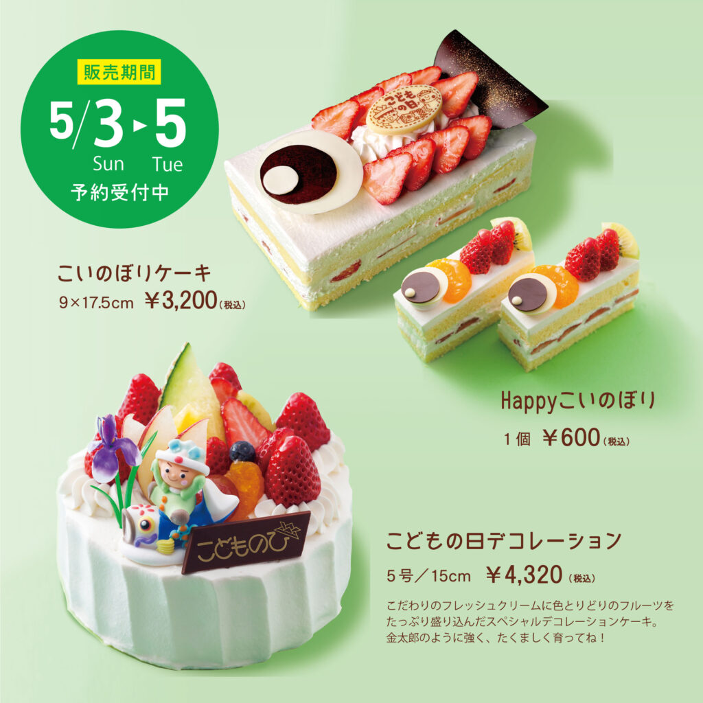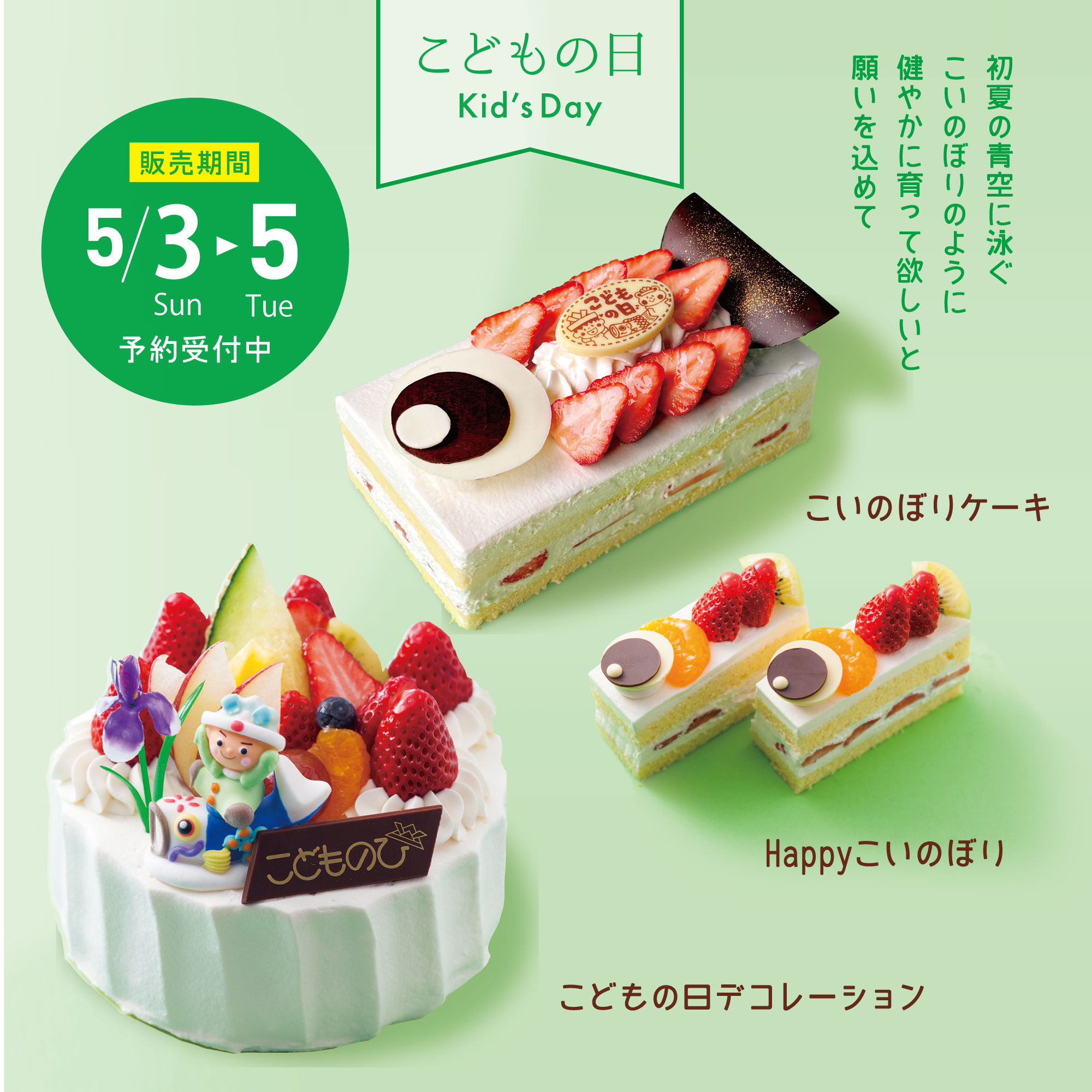こどもの日限定ケーキも販売します!!(販売期間:5月3日~5月5日)