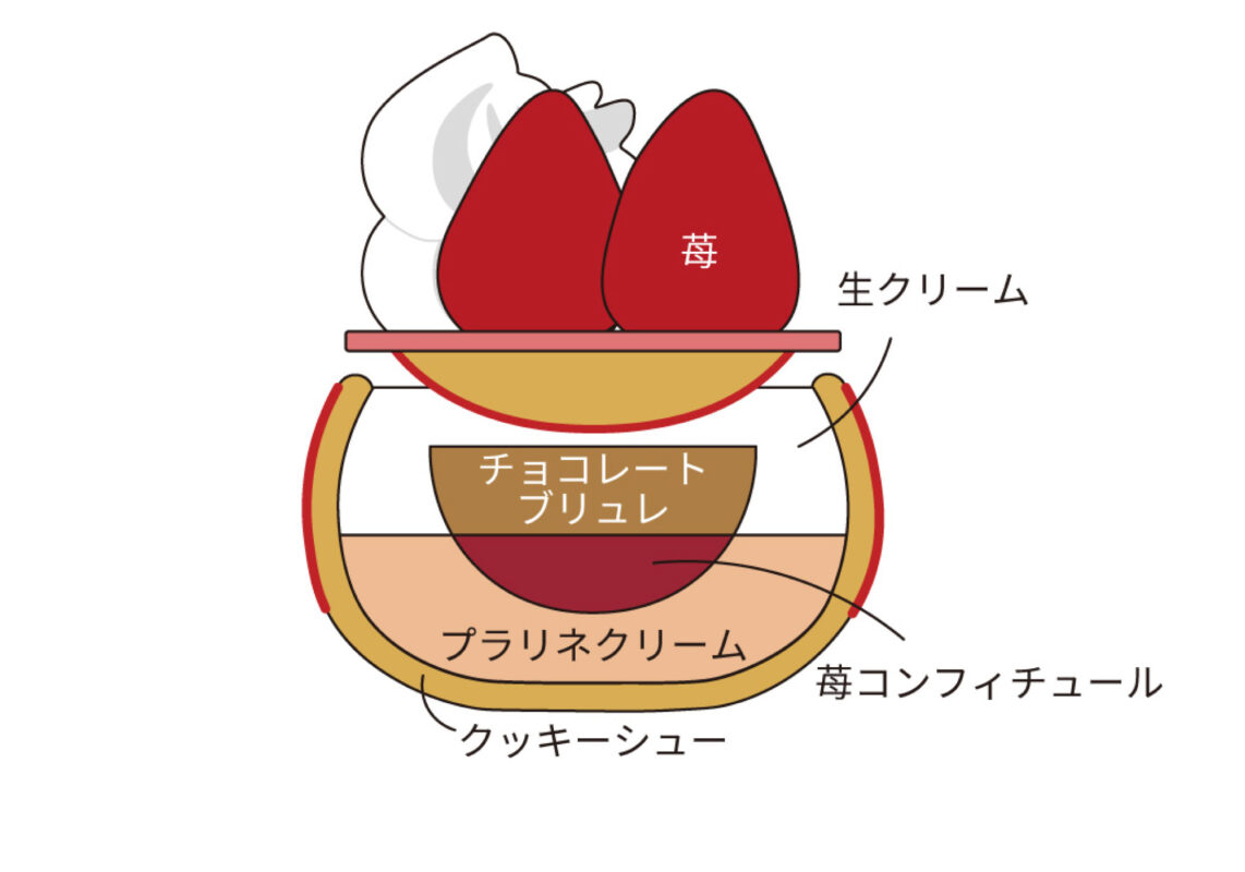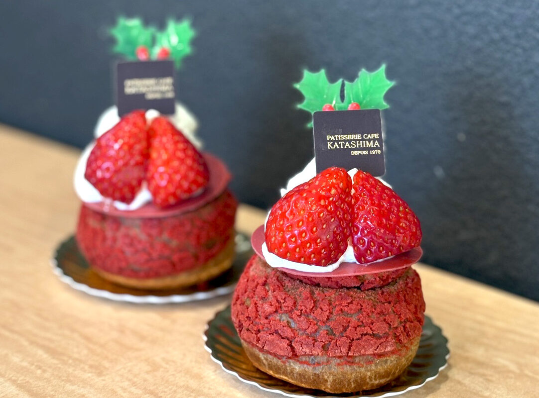 ¥660(税込)鮮やかなクッキーシューにプラリネクリームと苺を合わせしクリスマスの華やかさと贅沢な味わいを追求しました。