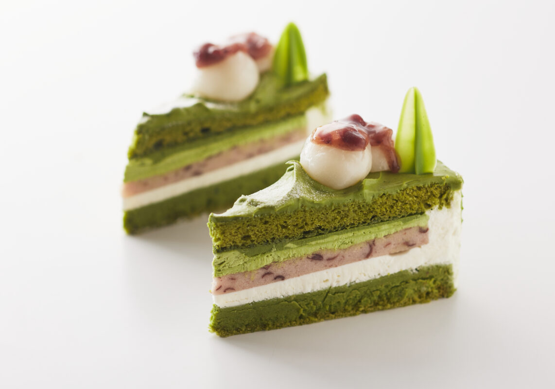 抹茶のほろ苦さと、小豆の優しい甘さ、ミルクのコクが絶妙に調和した優しい味わいの和のショートケーキ。