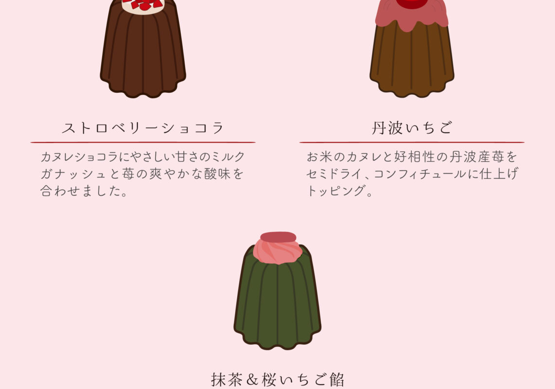 但馬地方(兵庫県)のブランド米「コウノトリ育むお米」の米粉100%でつくったグルテンフリーカヌレに期間限定"いちごフェア"バージョンが登場!